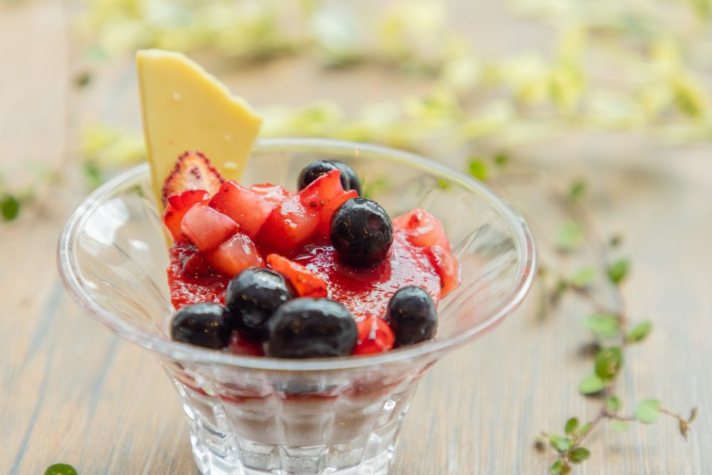 “给咖啡提拉米苏配上当季的水果”