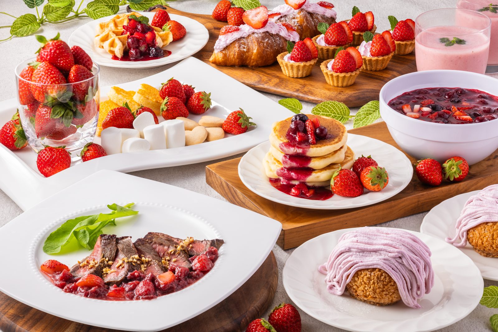 在本酒店,在“宗像草莓农场”作为老板购买了草莓苗,工作人员参加了定植和间歇性等农活培育草莓。将从2025年12月下旬开始将开始收获的草莓送给顾客的特别企划。请在自助餐内享受草莓改编的果汁和调味汁等。