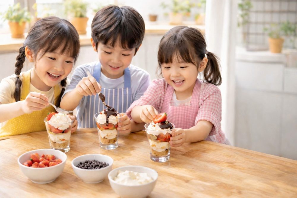 무나카타 딸기 팜에서 기른 딸기도 토핑하고 오리지널 퍼페 만들기를 즐길 수 있습니다.