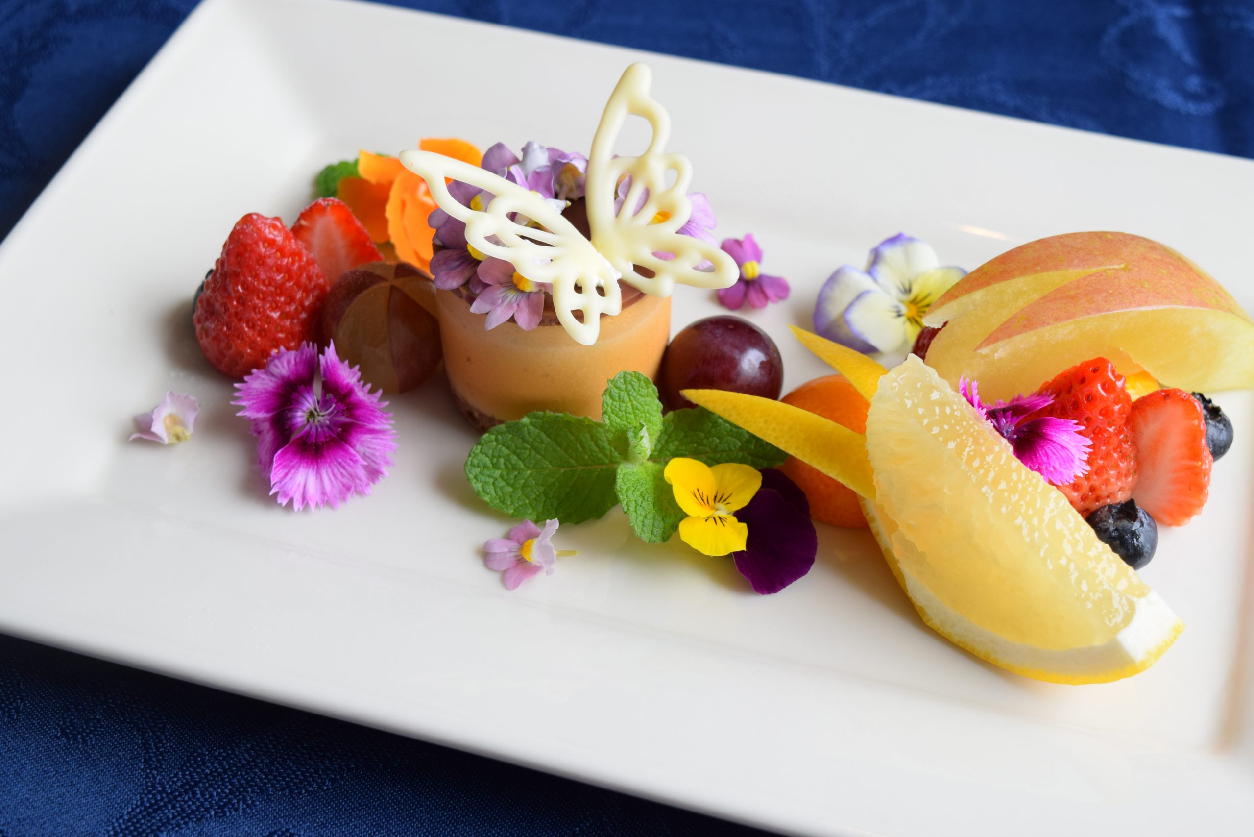 期間限定で“神秘の渡り蝶”アサギマダラが舞い飛ぶ花園をイメージした限定デザートプレートをご用意しております。花にとまり、羽を休めるバタフライモチーフがアクセントで、女子会や記念日にもおすすめです。