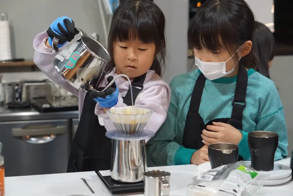 バリスタ濵田氏をお招きしてキッズ体験プログラムを開催。