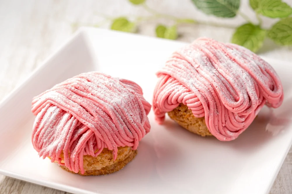 サクサクのシュー生地に、提供前にクリームを絞った人気のクッキーシュークリーム。期間限定、ストロベリーモンブランをライブキッチンで提供中。